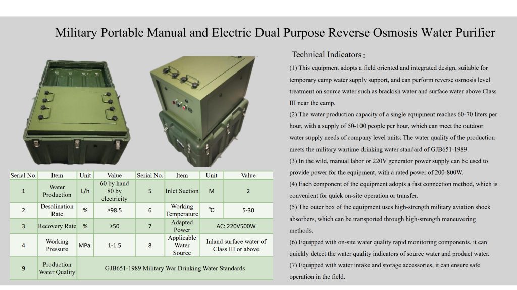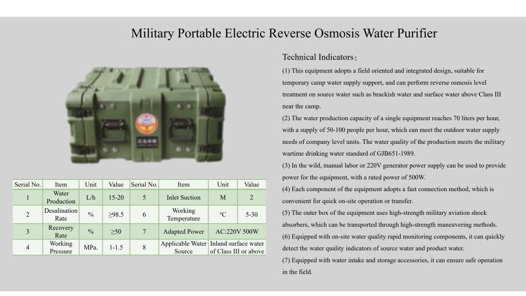 Water Solutions PD August 3, 2025 Leave a Comment on Water Solutions by admin Support Systems / Water Solutions Portable Desalination Field Deployment Kits Reverse Osmosis Units